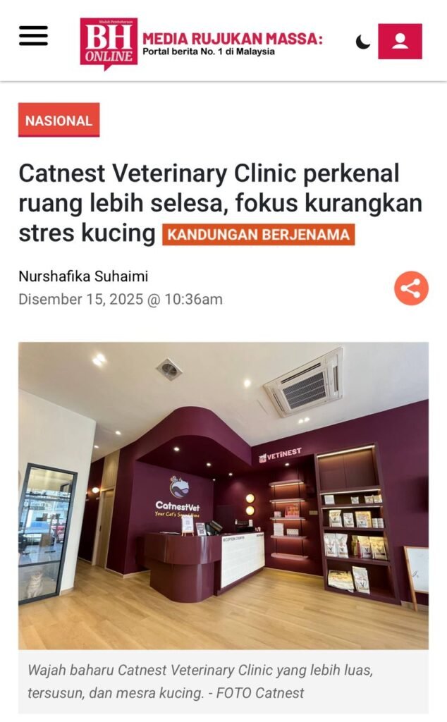 0017 Suki2025-02-22 医生和护士都很细心讲解照顾猫猫的知识,我家猫猫之前也在这里结扎 伤口回复的很快 也没有留疤痕,这里也有猫grooming整体很不错 👍👍 推荐你们 👍 syazwina2025-02-21 suka gila doctor and staff sebab sangat sangat professional and friendly. guide one by one untuk kucing yang sakit. love do’oh <3 Nurulain Nadhirah2025-02-12 I dah hantar more than 10 cats here, my own and strays. It has always been a good experience with the clinic! Sent my cat, Yoda for grooming today. it was easy because boleh book online and just drop off and pick up later tabs foodscoot2025-02-12 Very good service.. all staff are nice.. Nurul Syakirin2025-02-12 god services and fast and very detail in examine my cat.ade 10%diskaun lg kalau daftar die punye catizen HAFIZ JIN2025-02-11 Tempat yang selesa. Staff mesra pelanggan Siti2025-02-10 Very excellent service. The doctor is very professional, friendly and able to identify the issue with the cat. Very well-explained and sure will come here again if there’s anything.